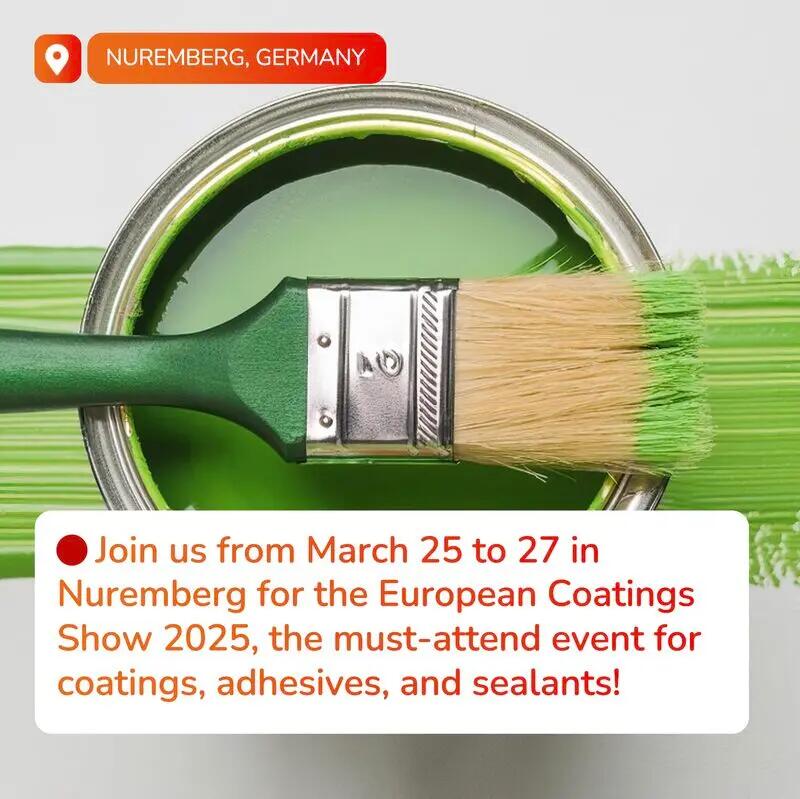 📅 Del 25 al 27 de marzo, nuestros equipos estarán en Núremberg para el European Coatings Show 2025, el evento imprescindible para recubrimientos, adhesivos y selladores.